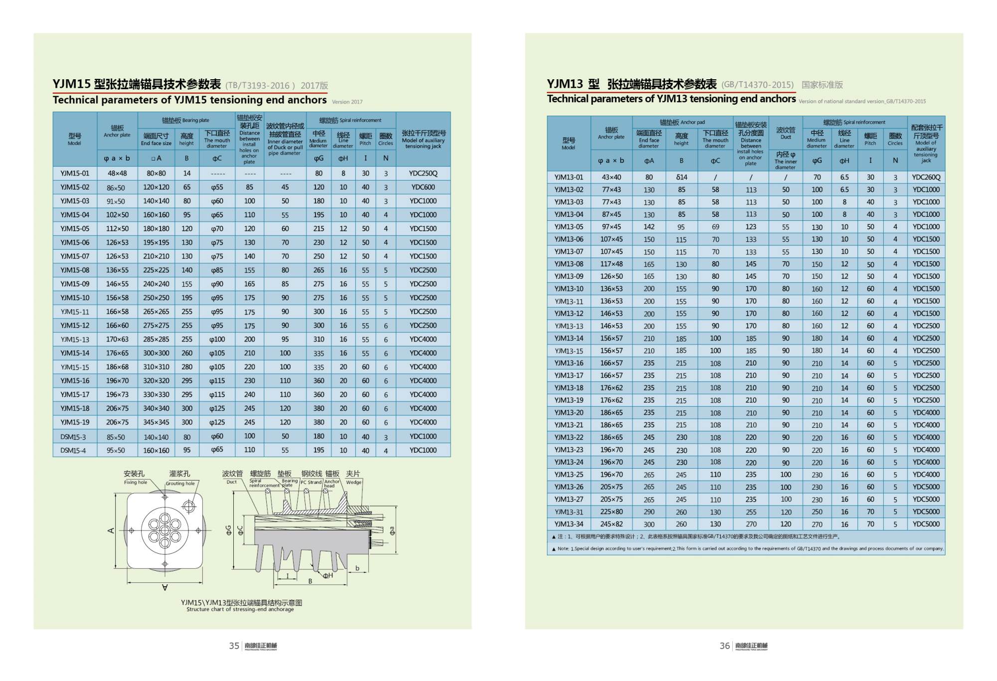 Table of technical parameters of YJM13 tensile anchor