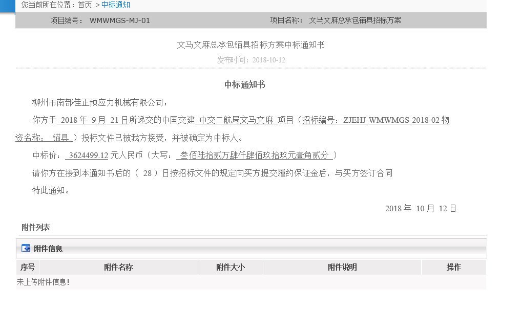 文馬文麻錨具中鐵標通知書